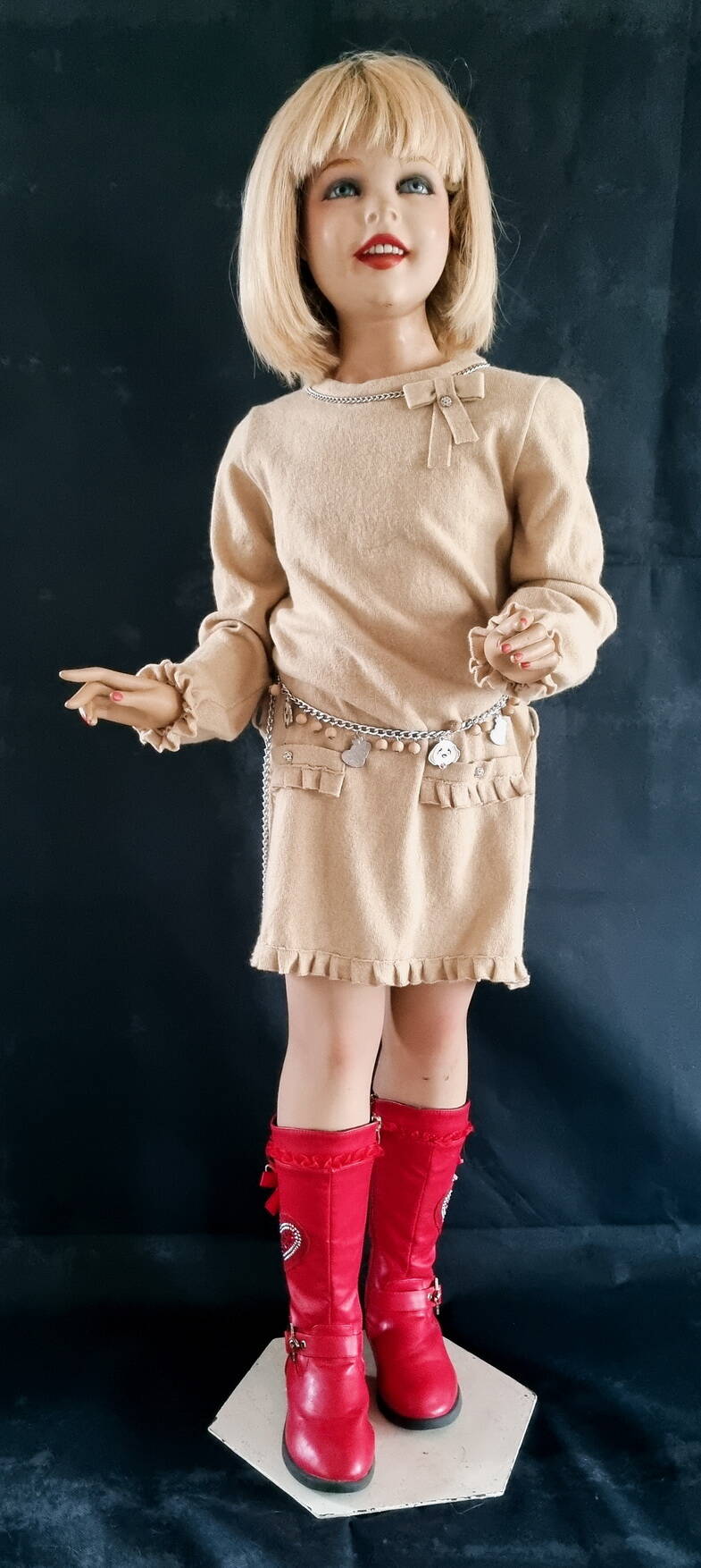 Gave pop met geimplanteerd haar en glazen ogen.